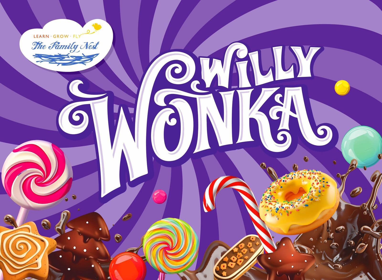 The Family Nest приглашает вас на волшебный утренник "Вилли Вонка и шоколадная фабрика"! 🏭🍬